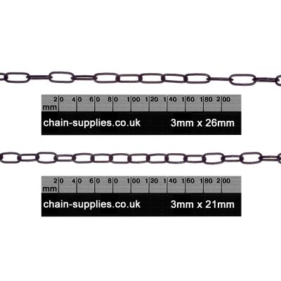 Black Plated Long Link Chain 3mm X 26mm