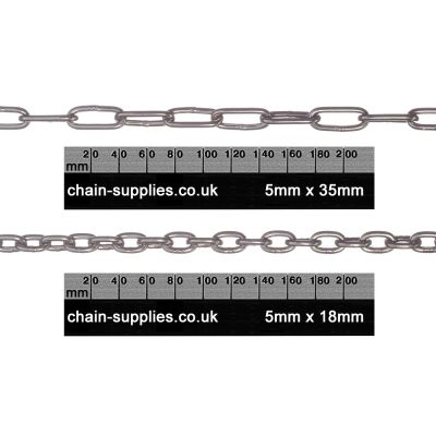 Chain Thickness 5mm, Internal Link Length 35mm. See specification table below for more information.