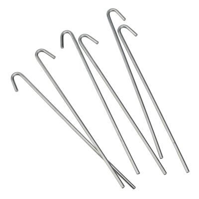 Our galvanized heavy duty ground pegs are ideal for securing netting or mesh to the ground. The peg uses a 6mm thick wire, and is 300mm long (12 inches). This peg is also perfect for pinning rabbit netting to the ground.